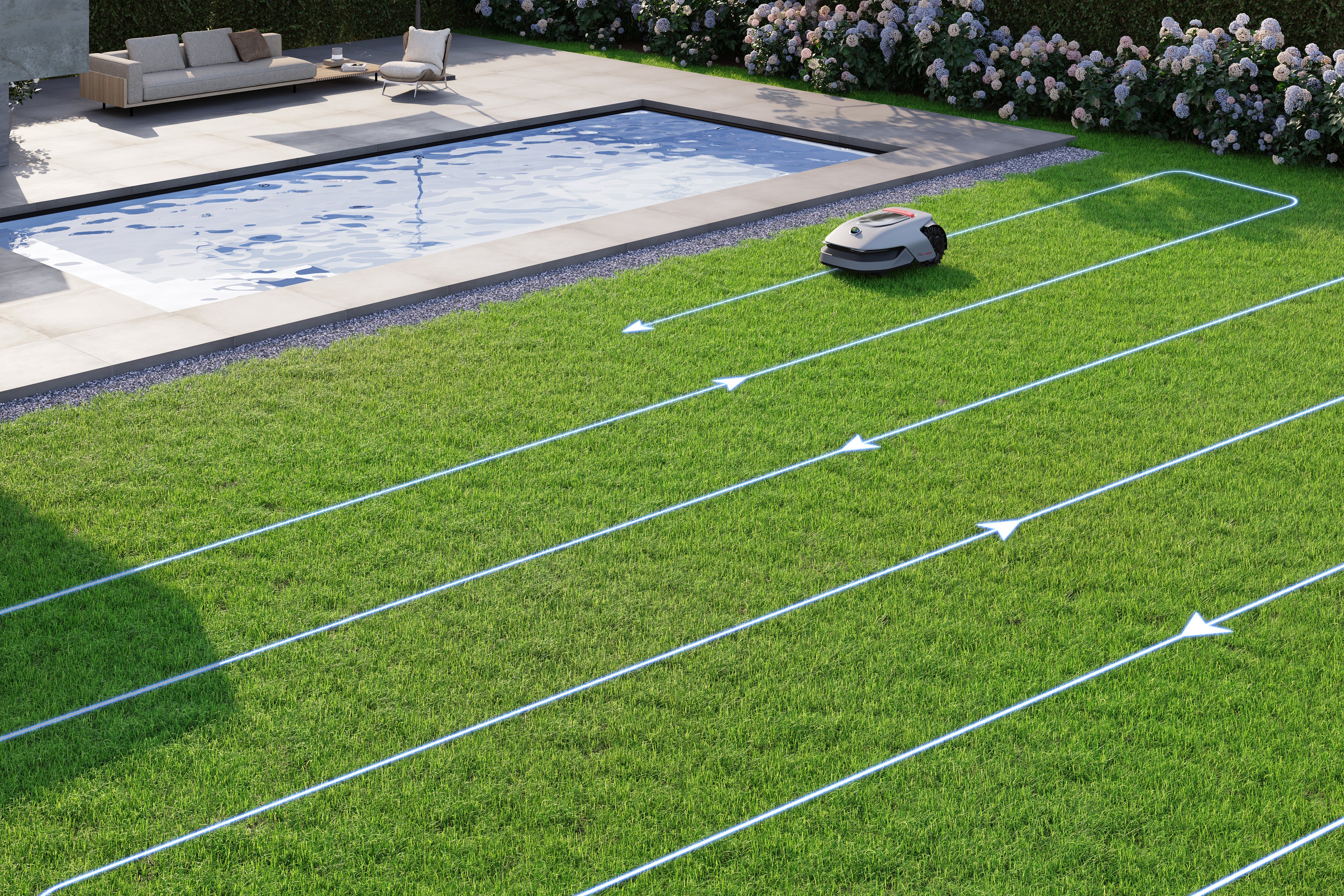 U-Shape Path Planning allows A1 Pro to locate and calibrate the mowing routes in real time, ensuring that it operates a programmed cutting path. The cutting path is orderly and regular, resulting in neat and uniform mowing results.