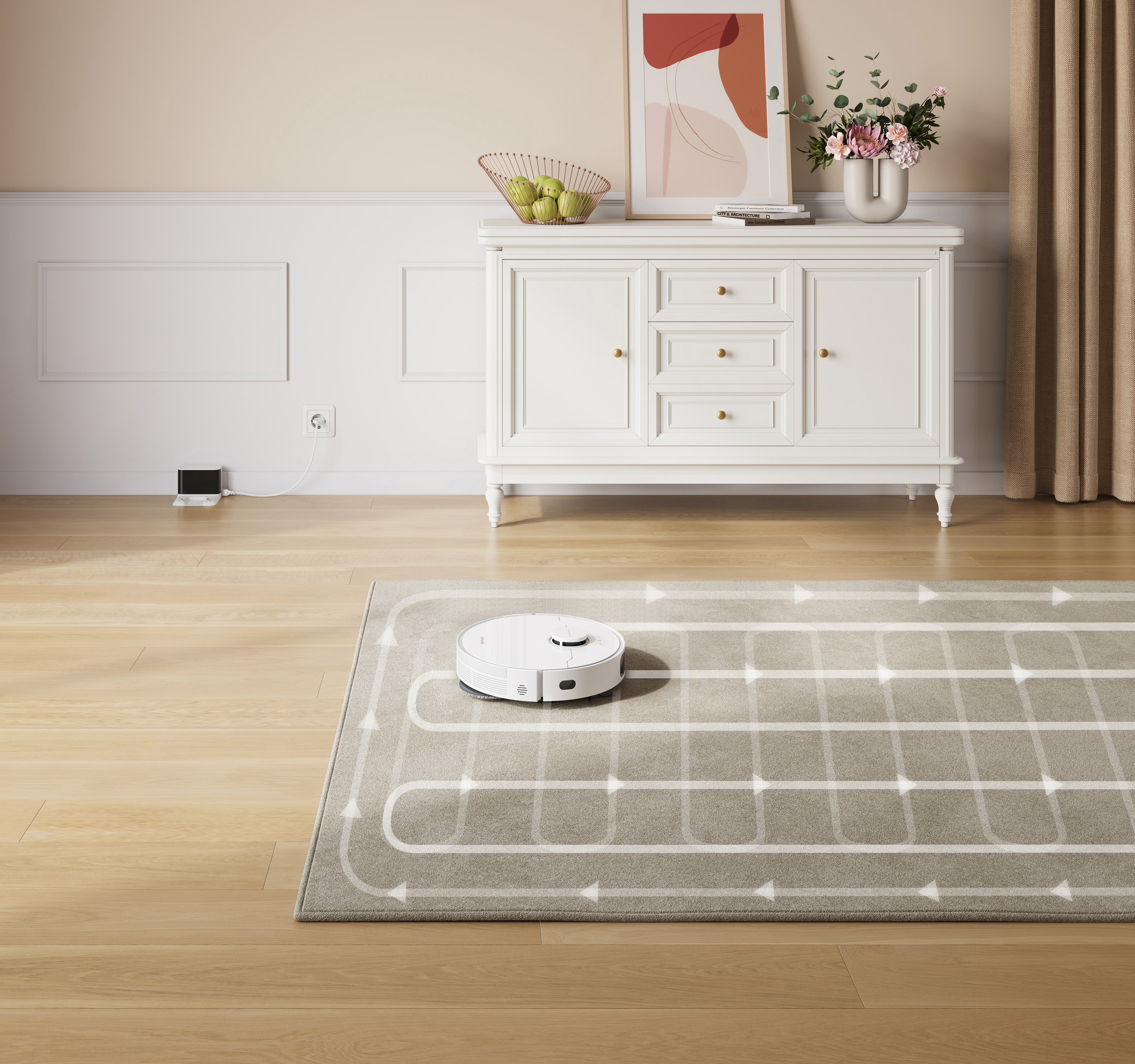 Ultraskaņas paklāju noteikšanas tehnoloģija ļauj L10s Pro Gen 3 precīzi atpazīt paklājus un automātiski pielāgot tīrīšanas režīmu katrai virsmai.