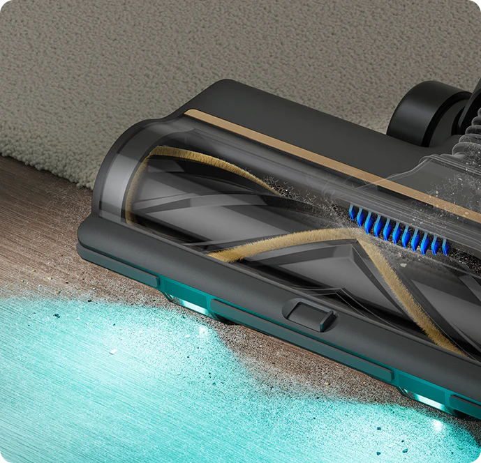 Clean-to-Edge™ mīksta rullīšu birste ar CelesTect™ fukciju