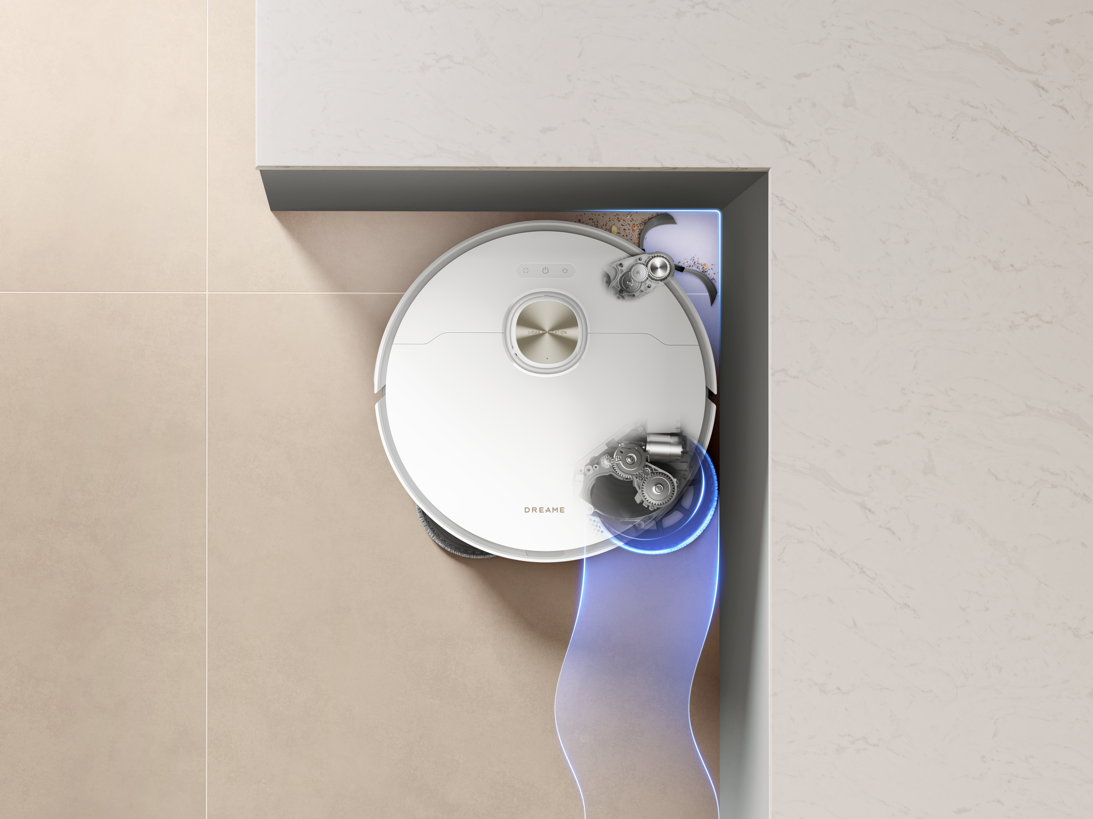 L50s Pro Ultra ir aprīkots ar izvelkamu sānu birsti, kas paredzēta putekļu savākšanai no 90° stūriem, zem izliektām mēbelēm un citās grūti aizsniedzamās vietās. Dinamiski pagarinoties, kad nepieciešams, tā palīdz uzlabot pārklājumu stūros un nodrošina konsekventu tīrīšanu gar malām.