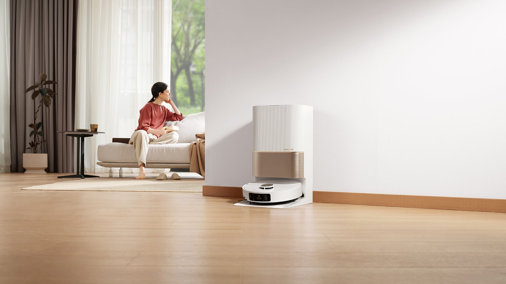 Mūsdienīga tīrīšanas slota ar uzlabotu uzlādes staciju.