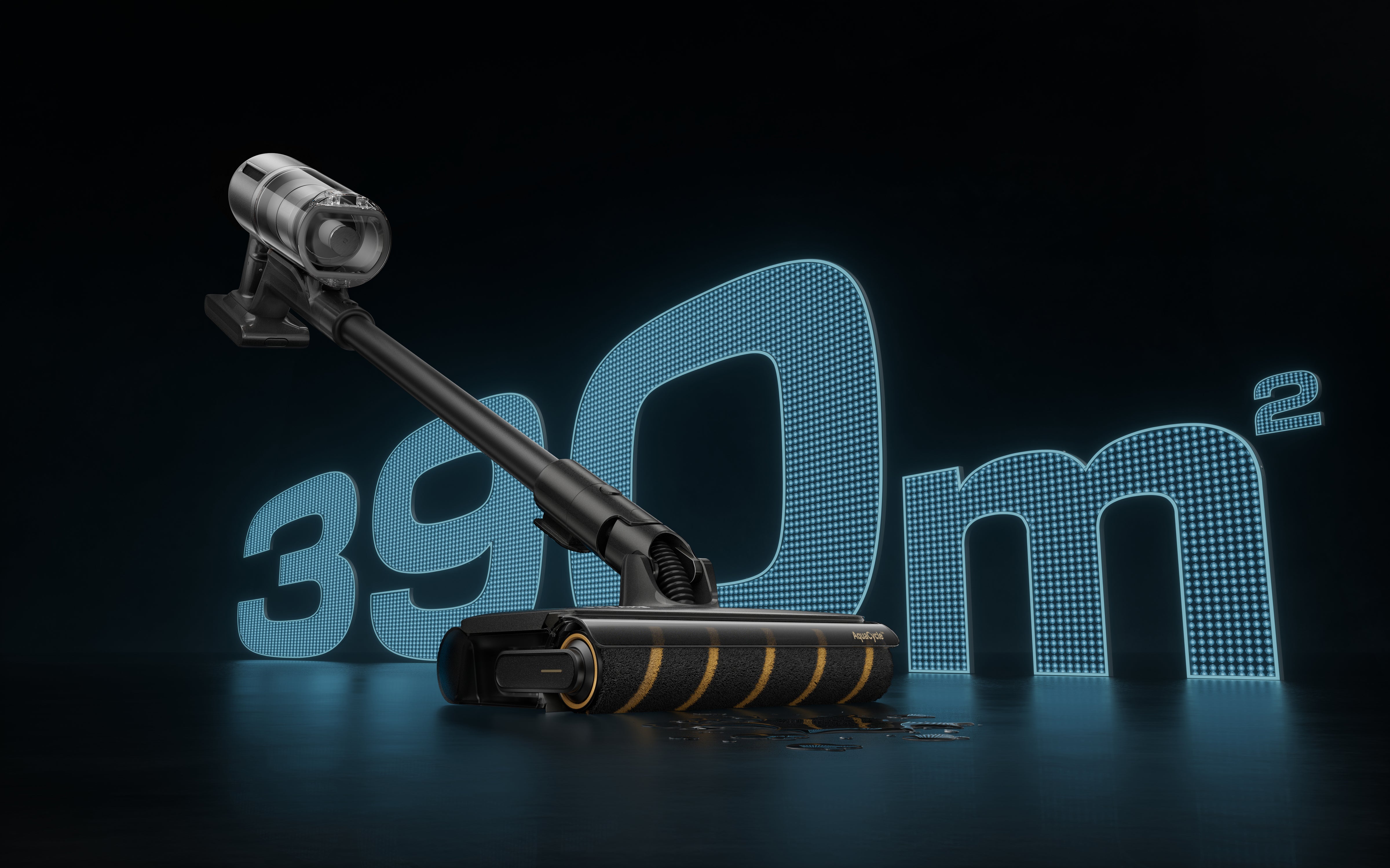 Lielā 400 ml* tīrā ūdens tvertne ļauj bez piepūles uzkopt mājokļus līdz 390㎡* platībā, nodrošinot vienmērīgu un nepārtrauktu tīrīšanu, uzlabojot efektivitāti un veiktspēju dzīvojamā vidē.